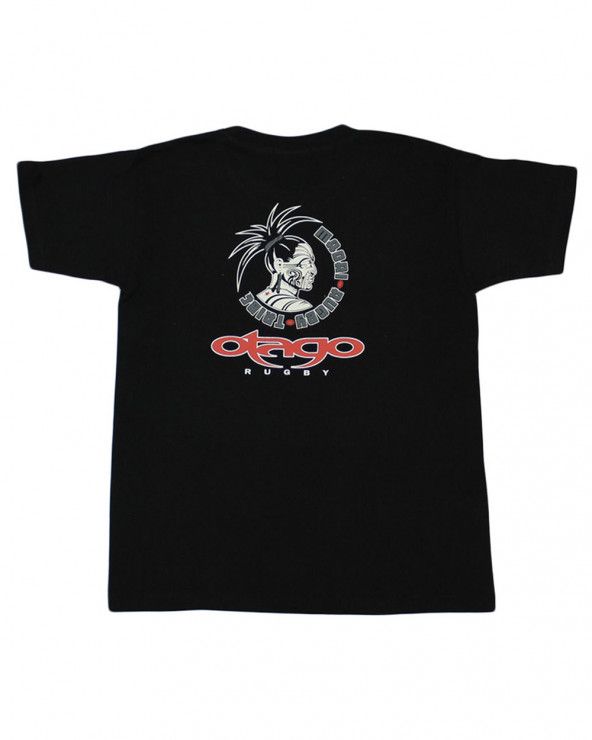 T-shirt Team Otago rugby enfant col rond noir Coupe ample et tubulaire. Maille jersey Sérigraphie : motif dos et logo centré sur le devant...