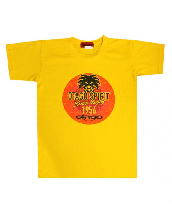 T-shirt Tikibeach Otago rugby enfant col rond jaune Sérigraphie sur le devant 100% coton
