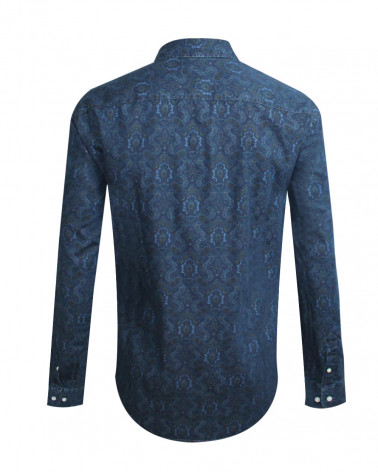 CHAMBRAY MADRAS CHEMISE ML OTAGO BLEU MARINE
