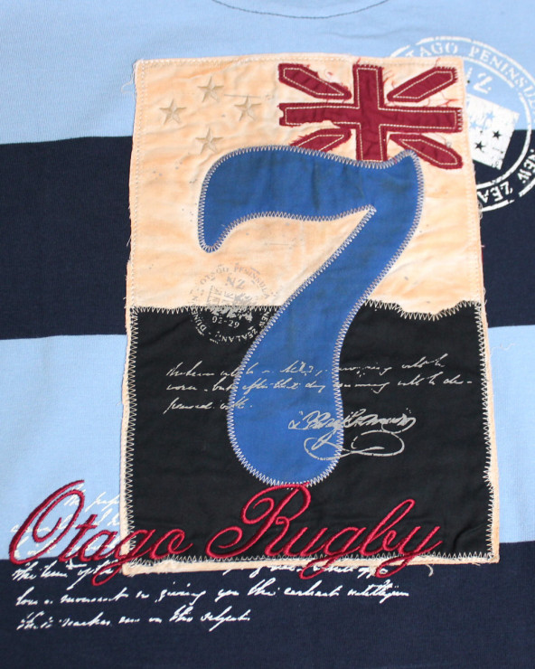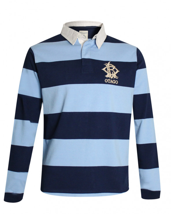 Polo manches longues HUNDRED Otago rugby rayé marine ciel pour homme