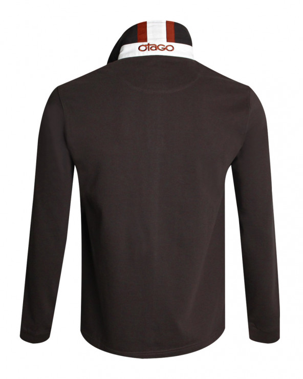 Polo Benoit manches longues Otago rugby marron homme