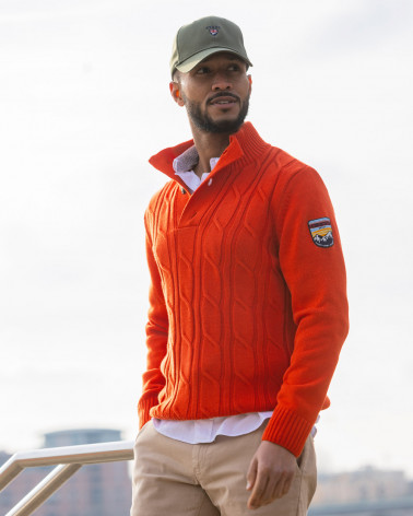 Pull torsadé Cardrona Otago rugby orange pour homme