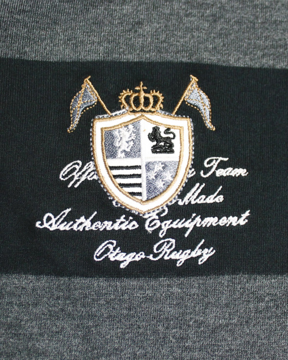 Polo manches longues RACING Otago rugby rayé noir et gris pour Homme