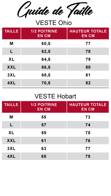 guide de taille comme la veste Hobart